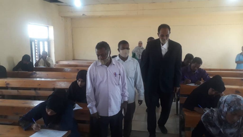 واصل مدير جامعة كسلا الدكتور/ يوسف الأمين يوسف إبراهيم يوم الأربعاء الموافق 25/11/2020 برفقة عميد شؤون الطلاب الدكتور حافظ عمر الخضر ونائب عميد الشؤون العلمية الدكتور النور جبريل والمدير التنفيذي لمكتب المدير الأستاذ محمد طاهر يعقوب – وضمن جولاته التفقدية لسير الامتحانات بكليات الجامعة – واصل جولاته التفقدية لسير الامتحانات بكلية علوم الحاسوب وتقانة المعلومات وكلية الطب والعلوم الصحية بالإضافة إلى تفقد سير امتحانات برنامج بكالوريوس علوم التمريض وبرنامج بكالوريوس المختبرات. وبكلية الحاسوب تحدث عميد الكلية الدكتور خالد محمد إدريس مبينا أن الامتحانات بالكلية تسير بصورة طيبة بفضل تذليل كل العقبات أمام الطلبة موضحا التزام الكلية بالاشتراطات الصحية مطمنا أسر الطلبة بخلو الكلية من أي حالة لجائحة كورونا وأن المستويات المتبقية ستستأنف الدراسة في غضون الأيام القليلة القادمة بمشيئة الله تعالى حسب التقويم الذي تم نشره .