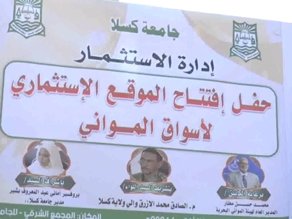افتتح الاستاذ عمرعثمان آدم وزيرالتنمية الاجتماعية المكلف نائب الوالي الموقع الاستثماري لاسواق المواني البحرية بالمجمع الشرقي لجامعة كسلا بحضور الكابتن محمد حسن مختار مديرعام هيئة المواني البحرية والبروفيسور اماني عبدالمعروف بشير مدير جامعة كسلا والاستاذ عادل علوب مدير الحكم المحلي وعدد من قيادات المواني البحرية وبعض عمداء واساتذة جامعة كسلا