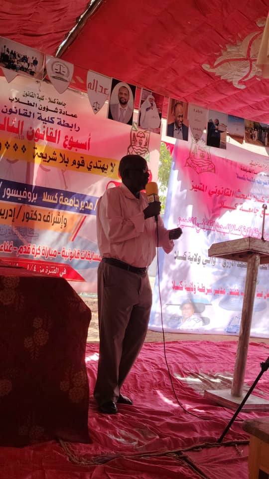الدكتور عاصم محمود عبدالقادر عميد كلية القانون بالإنابة استعرض البرامج والمشروعات التي يشتمل عليها الاسبوع من محاضرات وورش قانونية وسمنارات وبرامج رياضية وثقافية وتراثية وابداعات طلابية مثمنا ادوار العاملين بالكلية وعضوية رابطة كلية القانون دورة الكرامة .