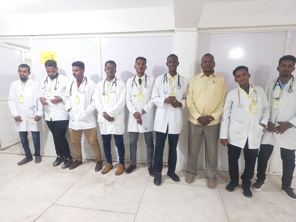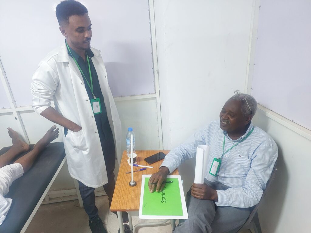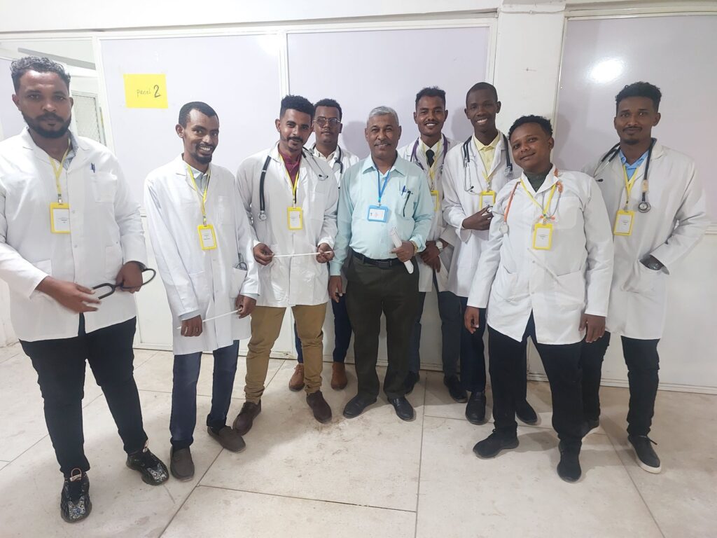 انعقد بقاعة كلية الطب ( البدروم ) بجامعة كسلا بولاية كسلا امتحانات البنيوية السريرية لطلاب المستوي السادس كلية الطب الدفعة ( 27 ) امتحان الاطفال والباطنية يوميْ الخميس والجمعة 20-21/فبراير/2025م لعدد اكثر من (150) طالب وطالبة . وفي هذا الإطار افاد دكتور الهادي عثمان جاد كريم رئيس قسم الاطفال والدكتور حامد احمد محمددين رئيس قسم الباطنية افادا وللمرة الاولى ينعقد امتحان الاطفال والباطنية لطلاب المستوي السادس الدفعة (27) بالطريقه العالمية غير التقليدية المتعارف عليها والتي تعرف بالامتحان البنيوي السريري المركب من خلاله يتم تقييم الطالب الممتحن عبر استشاريين واختصاصيين وأساتذة من مختلف الجامعات السودانية بعد مرور الطالب بعدد من المحطات وكل محطة بها ممتحن خارجي وهذه الطريقة تقيِّم الطالب بصورة حقيقية من خلال الامتحان وامامه المريض والتي تغطي كل تخصصات طب الاطفال والطب الباطني وهذا ينعكس ايجاباً على انتاج وإعداد خريج طب بصورة ممتازة ومواكبة لطرق التعليم المتعارف عليها عالمياً ويستطيع الطالب التعامل مع المرضى بصورة سلسة تتوافق مع حالة المريض .