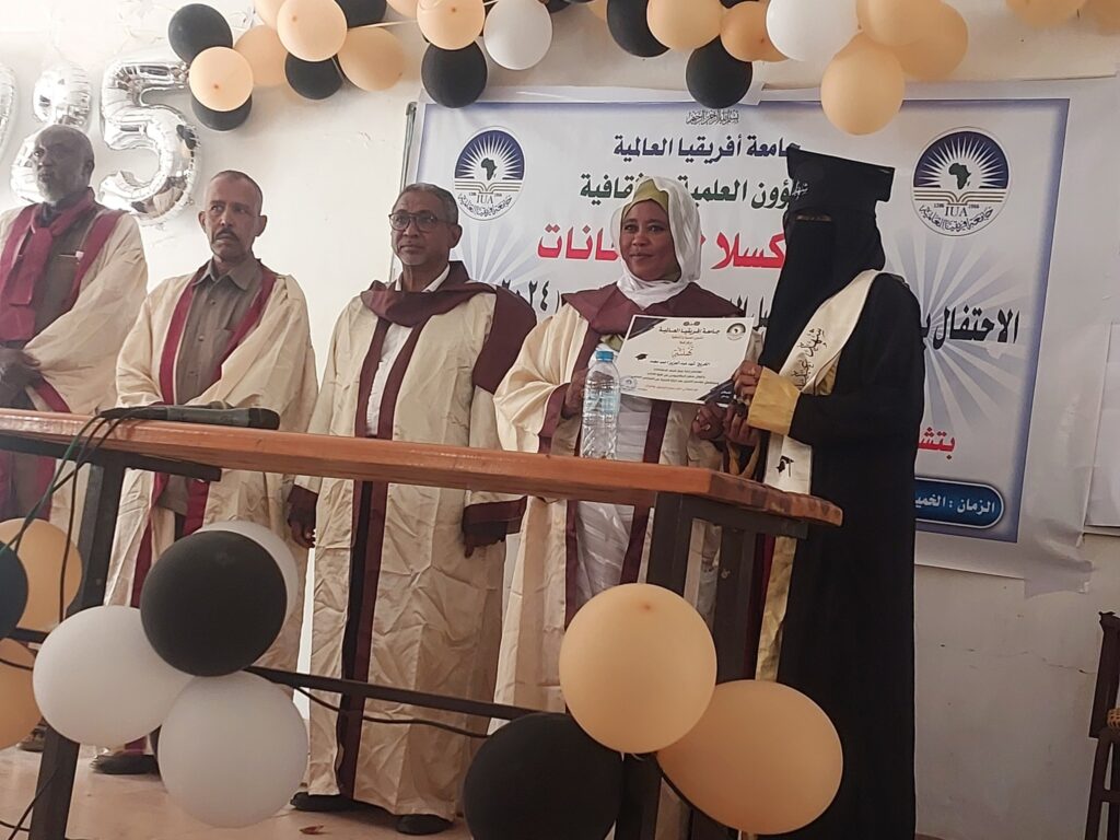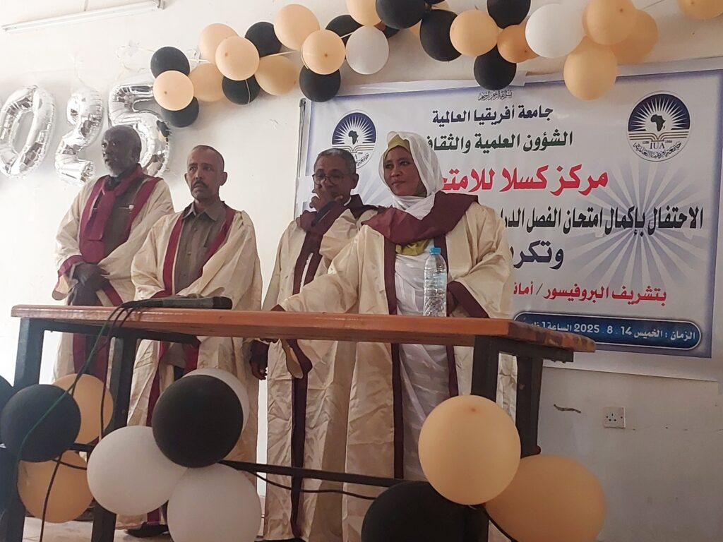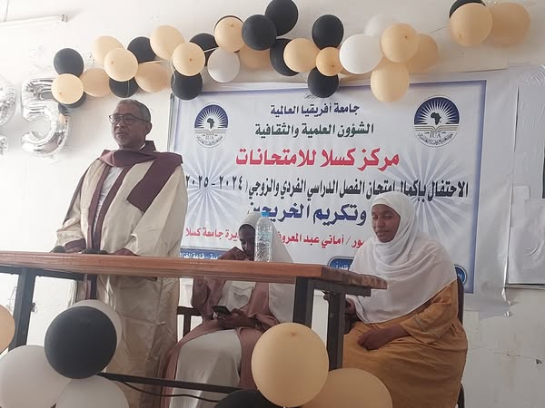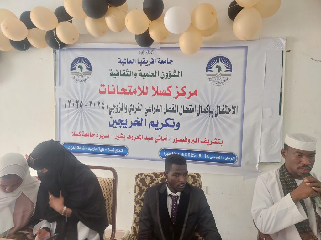في أجواء مفعمة بالفخر والاعتزاز ، شهدت قاعة الغزالي بكلية التربية – جامعة كسلا ، نهار اليوم ، احتفالاً مميزًا لتكريم خريجي جامعة إفريقيا العالمية من مركز كسلا ، بالتزامن مع إكمال امتحانات الفصلين الفردي والزوجي للعام الأكاديمي 2024 – 2025م ، وذلك بتشريف البروفيسور أماني عبدالمعروف بشير مديرة جامعة كسلا ، وحضور قيادات الجامعة وأعضاء هيئة التدريس وأسر الخريجين .