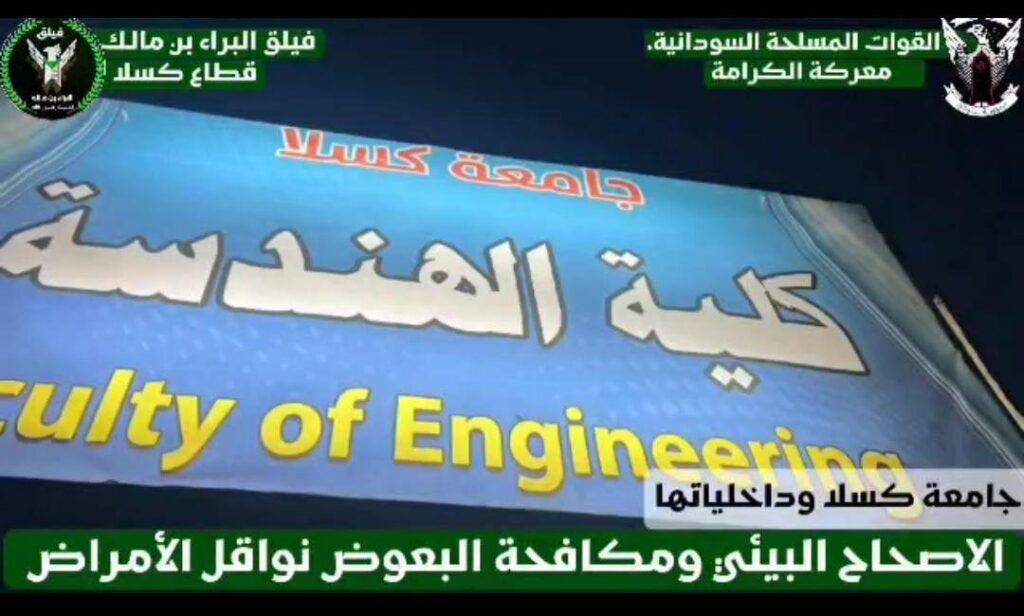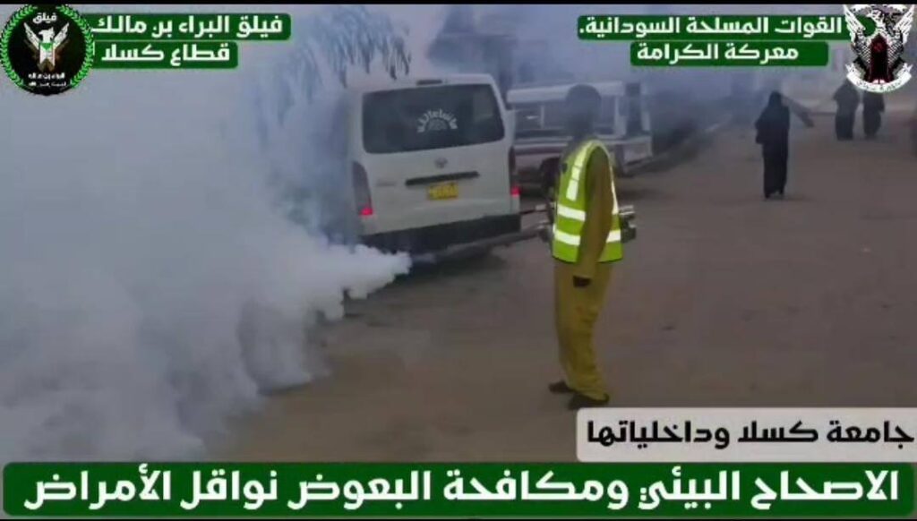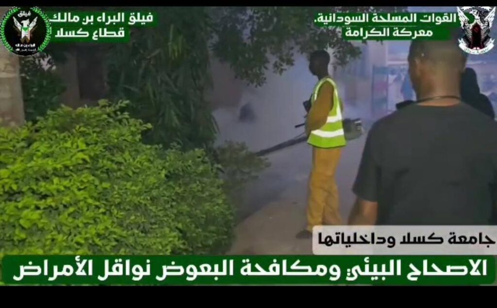 في إطار الجهود الرامية لحماية مجتمع الجامعة والحد من مخاطر نواقل الأمراض التي يشكلها البعوض وما يترتب عليها من آثار صحية خطيرة كأمراض الملاريا والحمى النزفية والحمى الصفراء ، نظّمت إدارة تأمين جامعة كسلا بالتعاون مع كتائب البراء بن مالك – قطاع كسلا نفرة كبرى لبرنامج الرش الضبابي بمجمع كلية الطب ومجمع كلية الهندسة ، بجانب تغطية الداخليات الأربع .