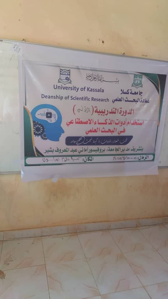 شرفت البروفيسور أماني عبدالمعروف بشير – مديرة جامعة كسلا ، ظهر يوم الخميس 25 / سبتمبر /2025م ، ختام فعاليات أولى الدورات التدريبية التي نظمتها عمادة البحث العلمي بعنوان : “استخدام أدوات الذكاء الاصطناعي في البحث العلمي” ، والتي استهدفت أساتذة مجمع الكليات بالضفة الغربية للقاش .