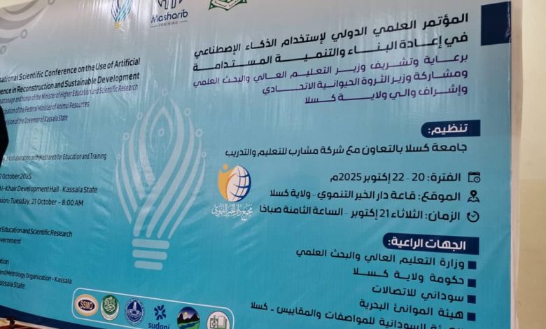 المؤتمر الدولي للذكاء الاصطناعي لإعادة البناء والتنمية المستدامة ــ جامعة كسلا بالتعاون مع شركة مشارب للتعليم والتدريب ــ 21/اكتوبر/2025م ــ قاعة دار الخير التنموي ــ كسلا