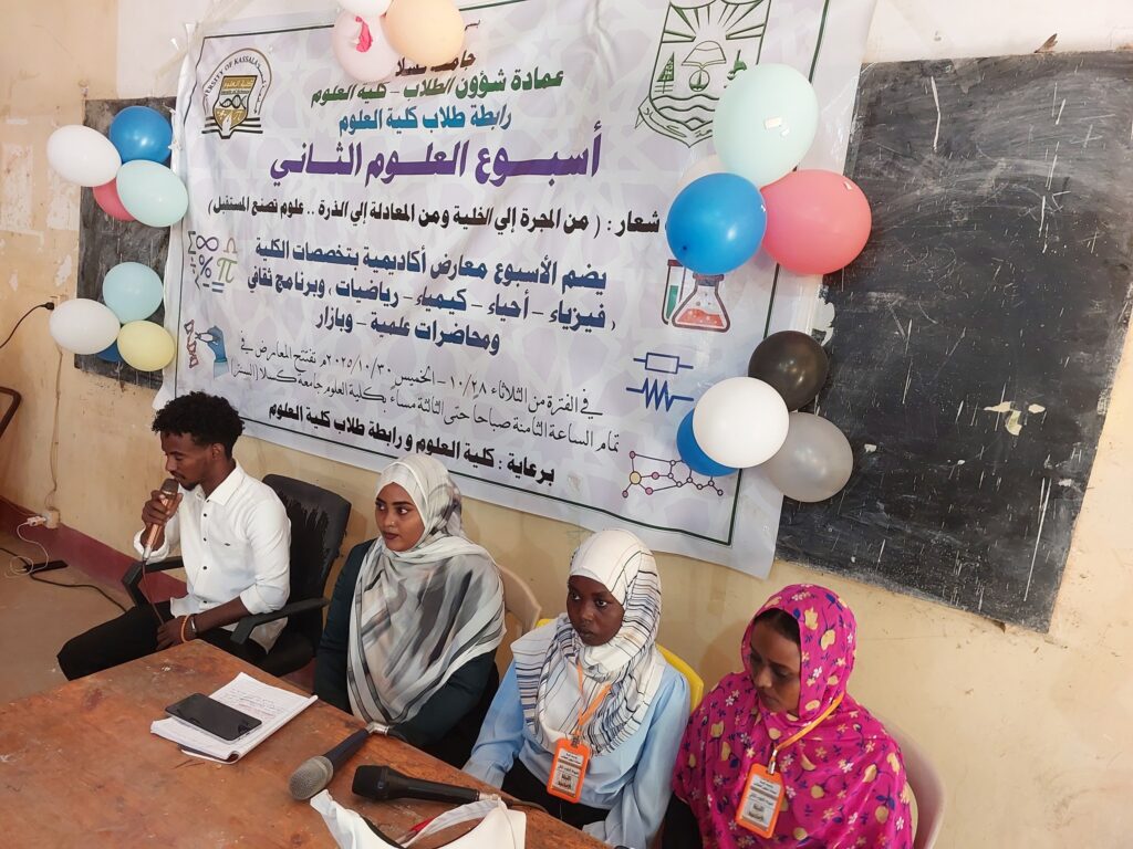 برعاية كريمة من كلية العلوم ورابطة طلابها ، وتشريف البروفيسور أماني عبدالمعروف بشير مديرة جامعة كسلا ، تُدشَّن هذه الفعالية العلمية الكبرى التي تُجسّد روح الإبداع والبحث والمعرفة في أبهى صورها .