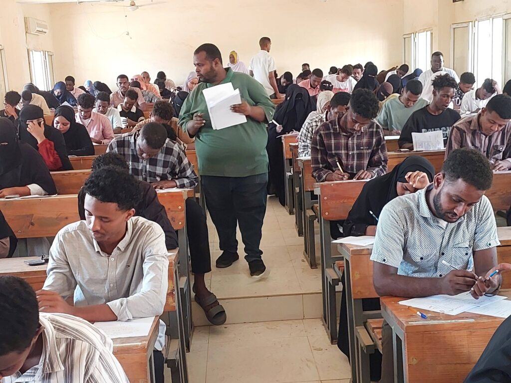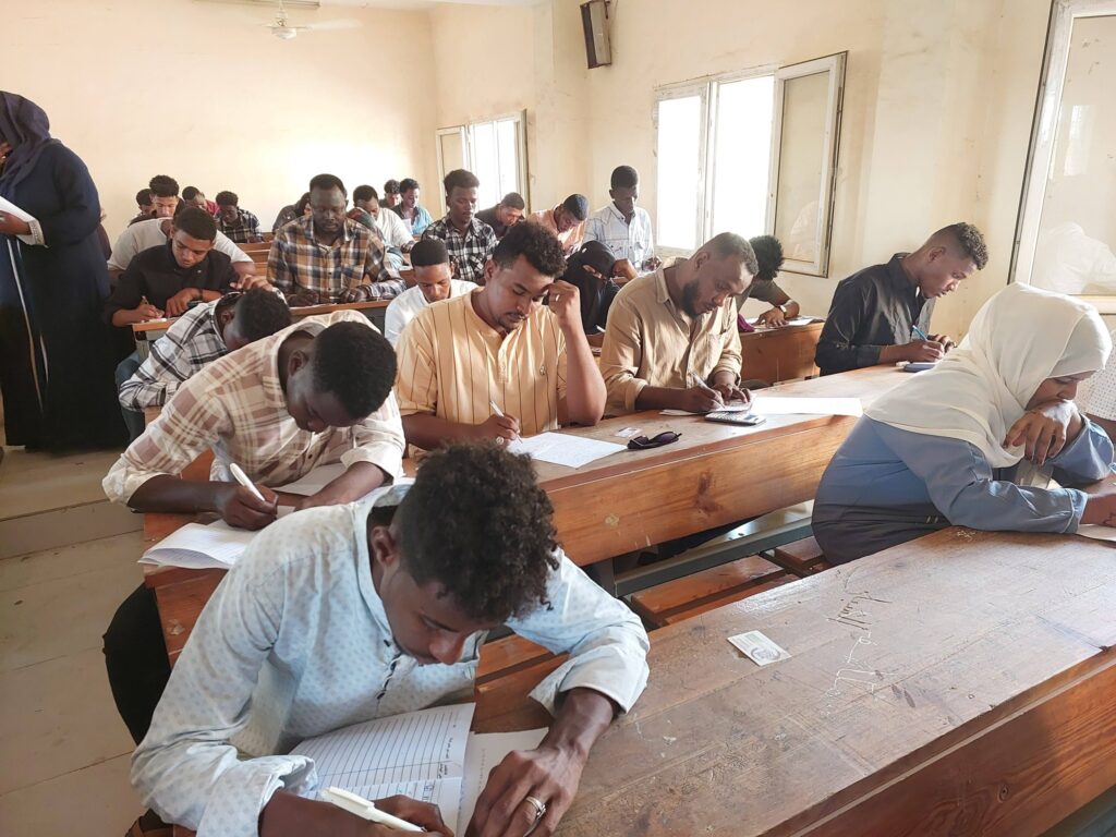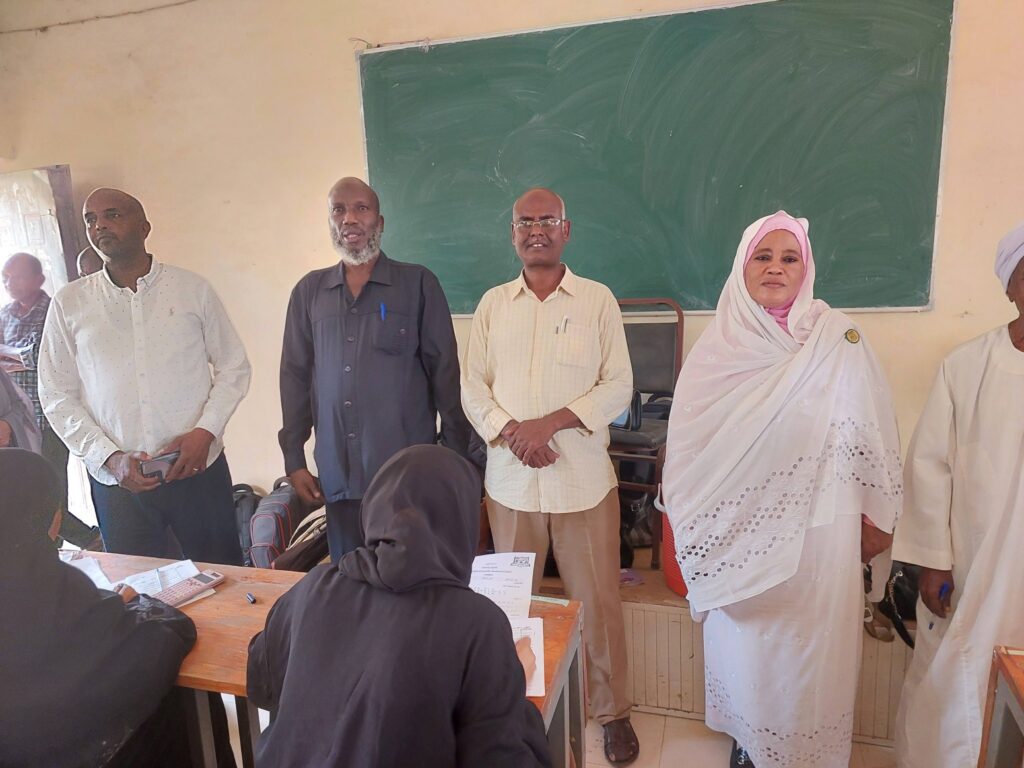 وكان في استقبال الوفد بكلية الهندسة الدكتور الهادي عيسى آدم عميد الكلية ورئيس لجنة الامتحانات ، ومسجل الكلية الأستاذة حميدة عمر ، حيث بلغ عدد الجالسين للامتحانات ( أكثر من 200 ) طالب وطالبة من مستويات البكالريوس والدبلومات.