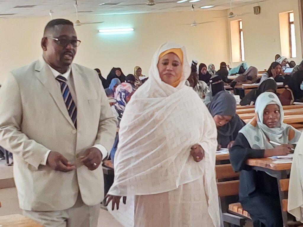 وكان في استقبال الوفد عميد الكلية الدكتور فوزي محمود المبشر ، والأستاذ حسن أوشيك أوهاج إدريس رئيس لجنة الامتحانات ، الذي أكد أن الامتحانات تسير وفق ما خُطط لها بدقة وتنظيم ، مشيرًا إلى أن عدد الجالسين يفوق (150) طالبًا وطالبة دون تسجيل أي حالات غياب ، في دلالة واضحة على الانضباط والاهتمام . كما ثمّن الزيارة ، مؤكدًا أثرها الإيجابي الكبير في رفع الروح المعنوية لكل مكونات العملية الامتحانية من أساتذة وموظفين وعمال .