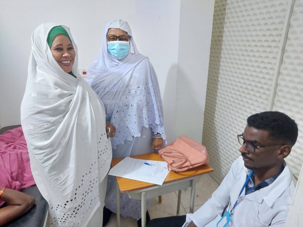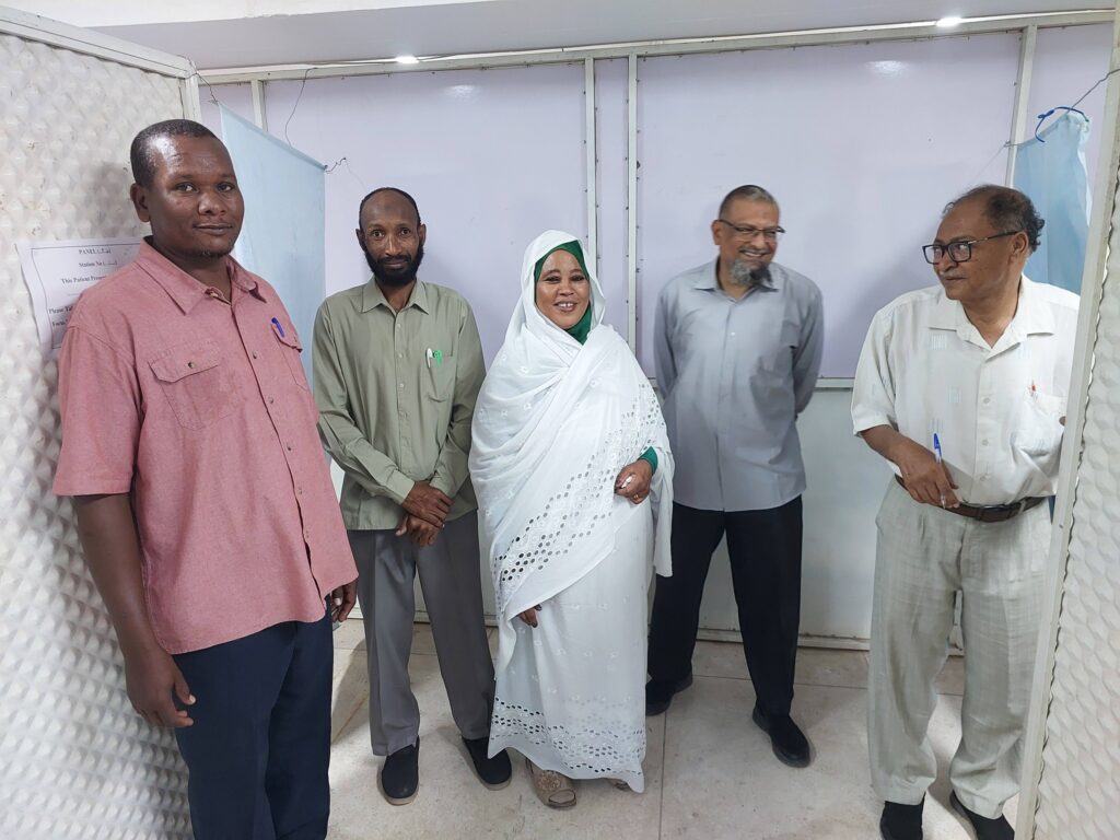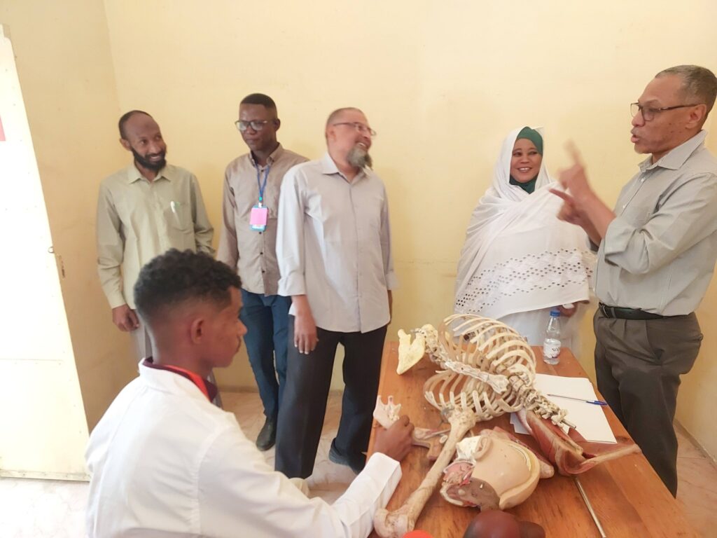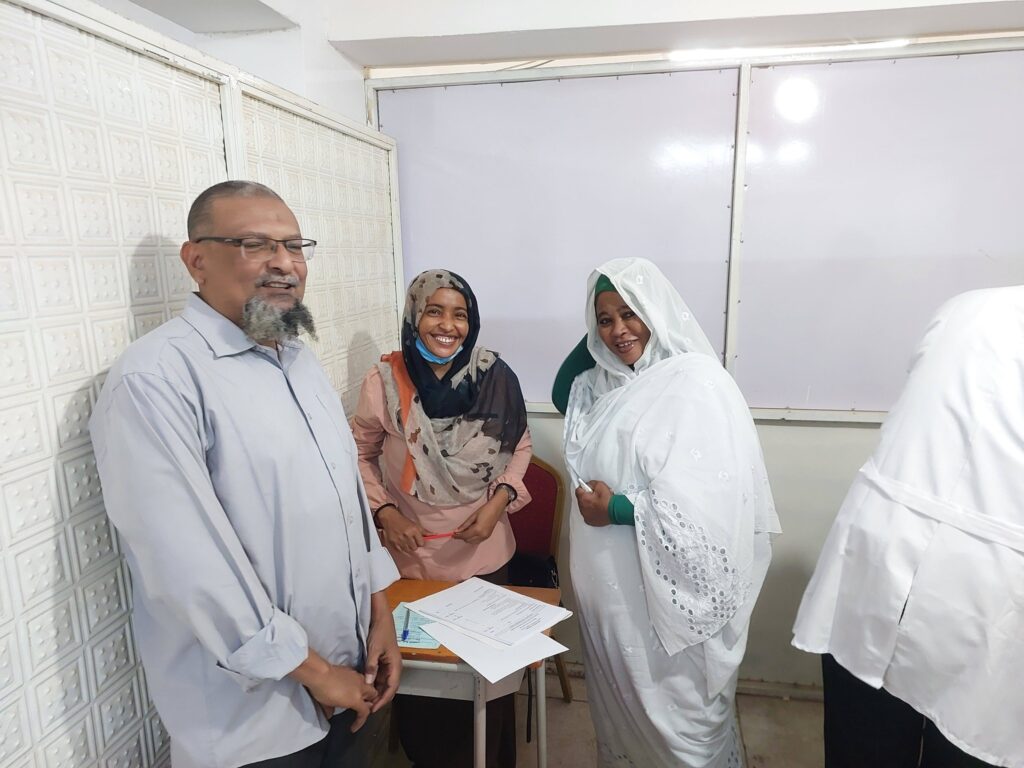 وكان في استقبالهما عميد الكلية الدكتور محمد عبدالرازق دسوقي ، والدكتور موسى آدم عثمان رئيس لجنة الامتحانات ، إلى جانب الدكتور عبدالمجيد عماد حسن ، رئيس قسم التشريح ، والدكتورة زينب علي الصافي ، رئيس قسم الباطنية ، والأستاذة فدوى محمد أحمد حسن مسجل الكلية .