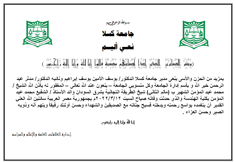 جامعة كسلا🔷🔷🔷🔷🔷🔷🔷🔷🔷مجلس اساتذة جامعة كسلا يمنح درجات علمية ببرامج مختلفة لاكثر من ( 212 ) طالب وطالبة لبعض الكليات واجازة اللائحة الاكاديمية الموحدة لجامعة كسلا 2022م🔶🔶🔶🔶🔶🔶🔶🔶🔶انعقد يوم الخميس 22/12/2022 اجتماع مجلس أساتذة جامعة كسلا رقم (210 ) برئاسة البروف امانى عبدالمعروف بشير رئيس المجلس بحضور الدكتور مجاهد عبدالمجيد محمد على Read more…